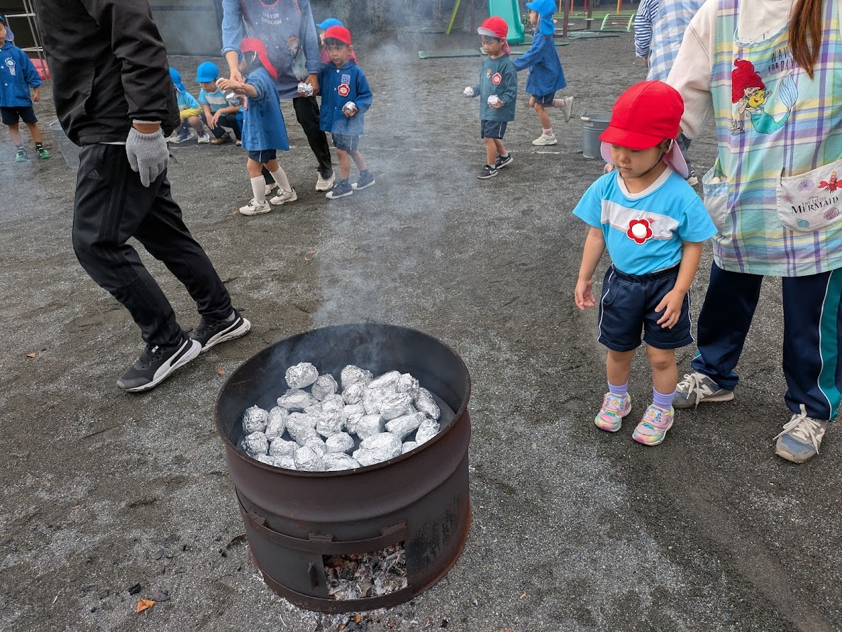 お芋を蒸し焼きにし、皆でおいしく食べることができました。